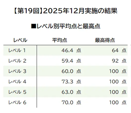 受検者は、日々の学習の復習としてテストを受検しますので、受検者の平均点は公開しますが、合否は判定しません。100点を目指して、知識の定着を図ることを目的にご受検ください。